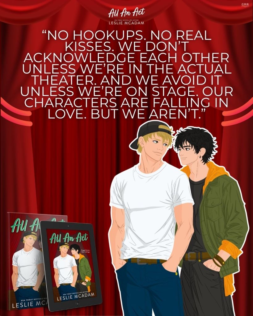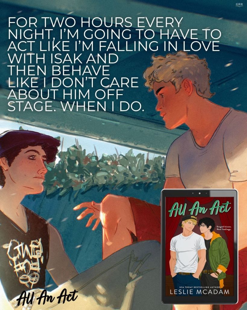 Except Lachlan didn’t know when he accepted the lead role that he’d have to kiss a guy—me—in front of the entire audience. And he didn’t know that I’ve had a crush on him forever. Although he might be suspicious, given what we get up to when no one else is around.